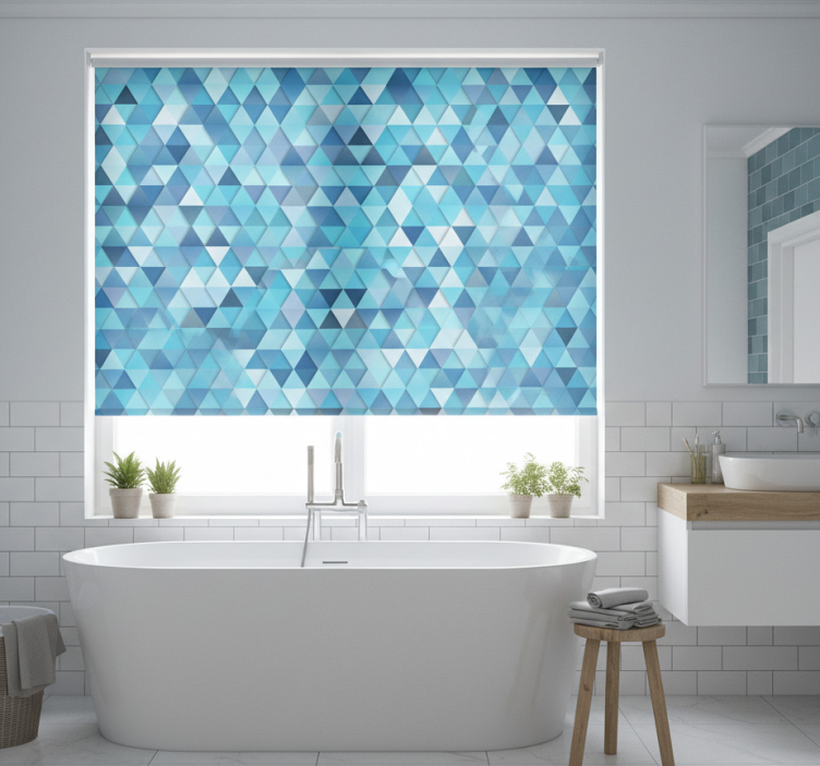 The Bathroom roller blind with triangular mosaic design bathroom roller blind transforms your bathroom into a stylish sanctuary! Its vibrant colors and geometric patterns create a lively atmosphere, allowing you to express your personal style. Imagine stepping into your bathroom and being greeted by this refreshing design every day. This roller blind not only serves as a functional window covering but also as a statement piece that elevates your bathroom's overall decor. Let your creativity shine and make your bathroom a delightful retreat!