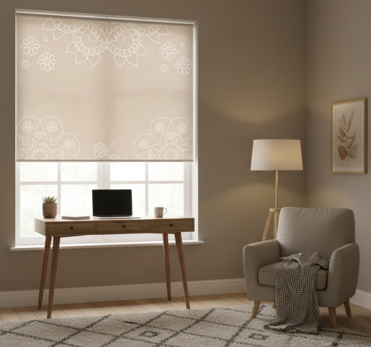 The Beige roller blind with indian mandala design beige roller blind is an inspiring choice for anyone looking to elevate their home decor. Its unique design not only beautifies the room but also adds a sense of tranquility and harmony. Imagine the soothing energy of a mandala transforming your living space into a serene retreat! This roller blind is not just a window covering; it’s an artistic statement that reflects your personality and enhances your environment.