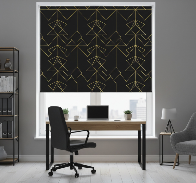 The Black and gold elegant lines office roller blind seamlessly enhances your decor, turning any mundane office into a stylish sanctuary! Its chic design not only elevates the visual appeal of your space but also serves practical purposes, such as protecting the room from harsh sunlight and allowing you to enjoy a sense of privacy when lowered. This roller blind transforms your environment into a harmonious blend of beauty and utility, making it a must-have for every discerning professional!