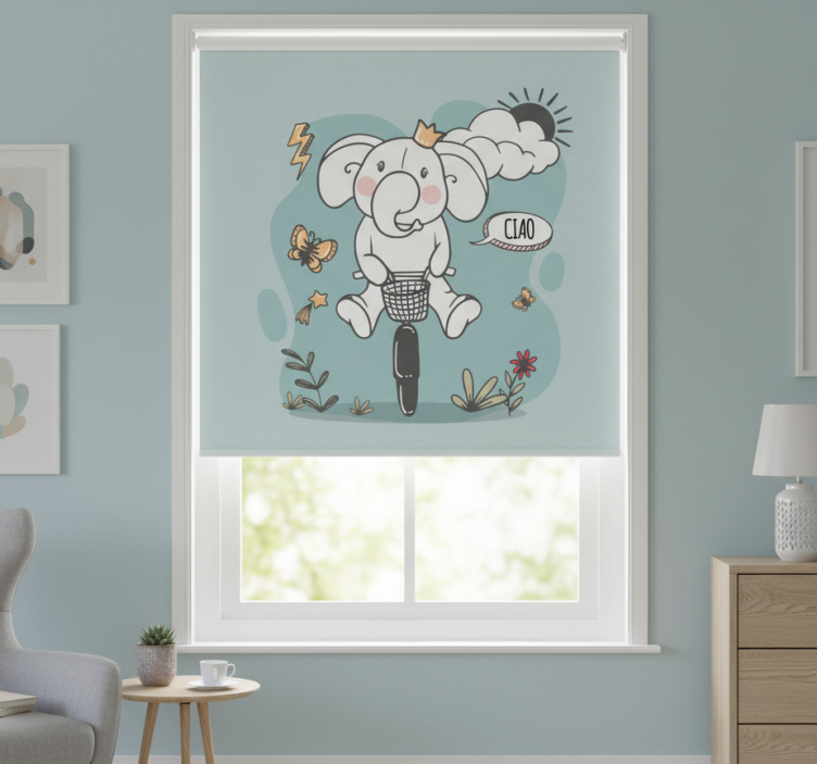 Reference: E9125Introducing the Blue roller blind hello elephant, a captivating design that seamlessly blends whimsy and functionality! This roller blind features delightful elephant graphics that bring joy to any room, complemented by a vibrant blue hue that adds a splash of color. With its easy assembly in just 2 clicks and effortless cleaning process, this roller blind is designed for modern living while ensuring your space remains stylish and inviting!