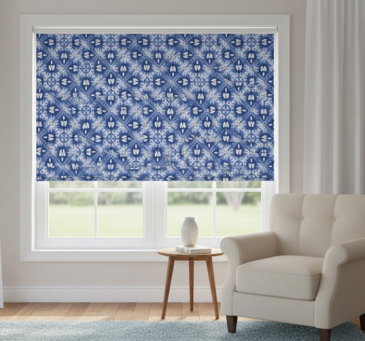 Blue roller blind with blue decorative pattern