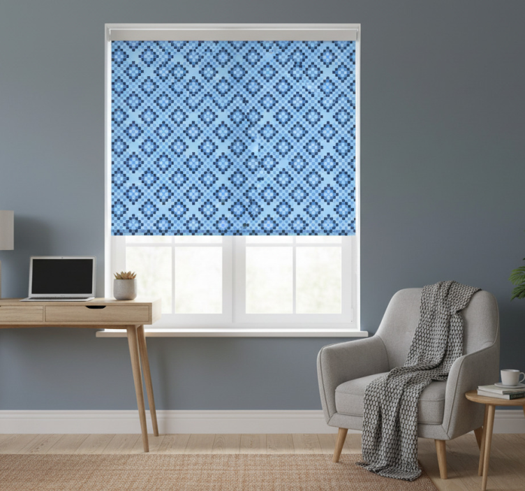 The Blue roller blind with geometric blue pixel design blue roller blind is more than just a window treatment; it is a statement piece that transforms your interior space! Its vibrant colors and intricate design add depth and character to your home, inspiring creativity and joy. This roller blind brings harmony to your decor, offering both elegance and functionality. With its ability to regulate light and maintain privacy, it creates a serene atmosphere where you can relax and unwind.