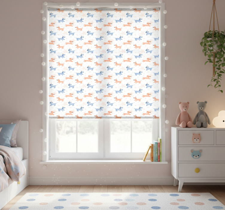 The Children room roller blind cute dogs with crown children room roller blind is the perfect choice for transforming your child's room into a magical haven. Its enchanting design naturally enhances the overall decor, creating an inviting atmosphere that sparks joy. Imagine your little ones giggling with delight as they watch their favorite canine characters decorate their windows. This roller blind not only serves as a practical window covering but also adds a touch of charm that makes the room feel cozy and personalized.