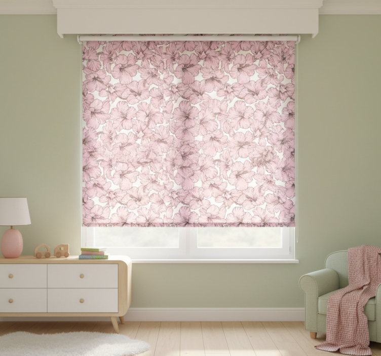 Reference: E6922Transform your child's space with our Children room roller blind pink hibiscus flower pattern. This delightful design features beautiful pink hibiscus flowers that dance playfully across a soft backdrop, creating a cheerful and inviting atmosphere. The roller blind is not only visually appealing but also practical, offering easy assembly in just two clicks, effortless cleaning, and customizable measurements. It protects the room from direct sunlight while providing privacy when lowered, ensuring your child enjoys a comfortable environment.