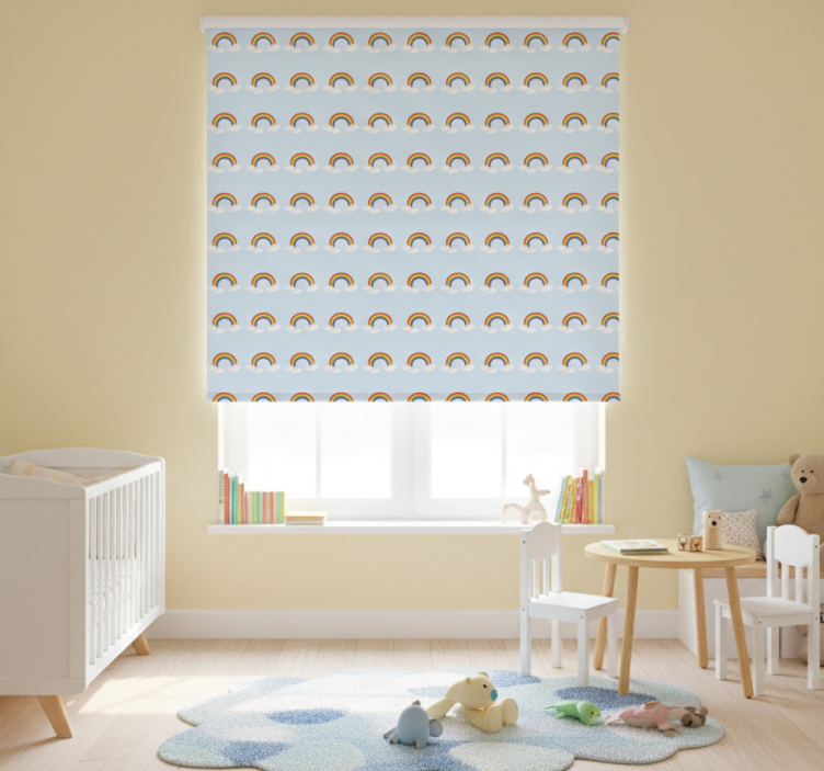 - Children room roller blind with colorful rainbow clouds