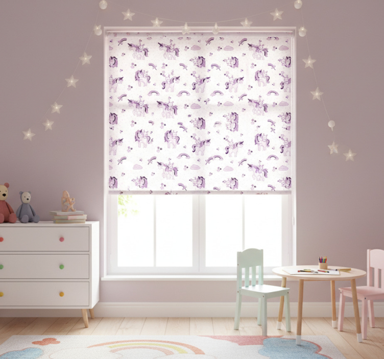 The Children room roller blind with unicorns and rabbits children room roller blind not only enhances the aesthetic appeal of your child's room but also sparks their imagination. The vibrant colors and playful design create a delightful atmosphere, encouraging a sense of wonder and adventure. This roller blind is the ideal decorative choice for parents looking to create a cozy, enchanting environment that reflects their child's personality!