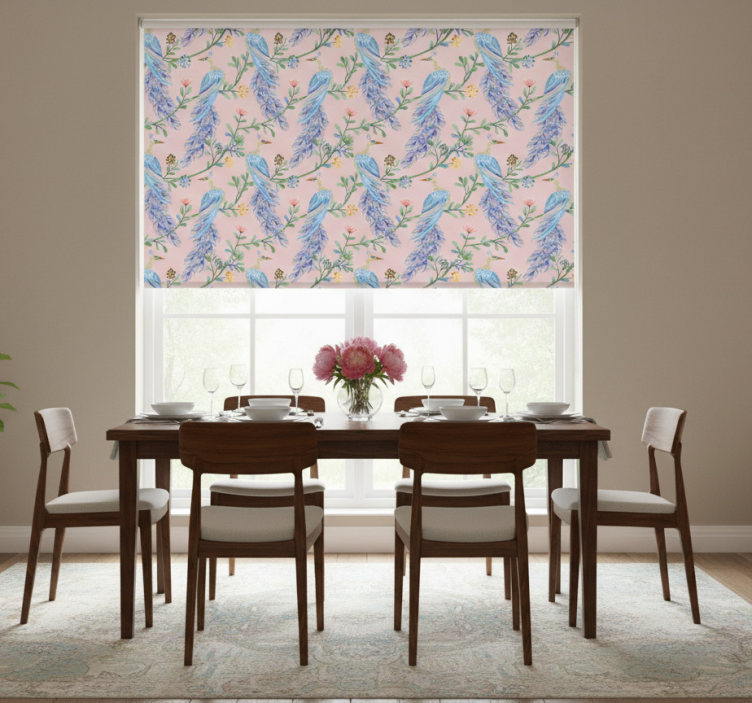 Installing the Dining room roller blind birds in a pink paradise dining room roller blind is a breeze, requiring just two clicks for easy assembly. With simple instructions, you can have your new roller blind up and enhancing your dining area in no time!