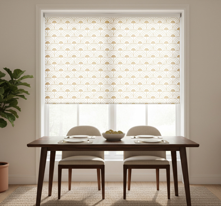 Dining room roller blind with gold gradient arc design