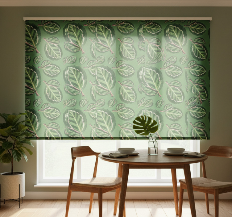 The Green maranta dining room roller blind is more than just a window treatment; it’s a statement piece that elevates your dining room's ambiance. Its vibrant design brings the beauty of nature indoors, inspiring warmth and relaxation. Imagine enjoying your meals surrounded by the soothing colors and patterns of this roller blind, which not only enhances your decor but also provides essential privacy and light control. Whether hosting friends or enjoying a quiet dinner, this roller blind will undoubtedly enrich your dining experience!