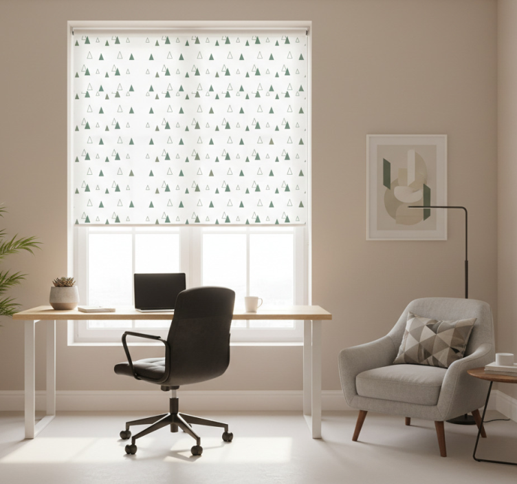 The Home office roller blind triangles nature colors home office roller blind is more than just a practical solution; it is a statement piece! This roller blind uplifts your workspace, turning an ordinary room into an inspiring environment. The triangle pattern combined with natural colors adds a touch of elegance, making it an ideal choice for enhancing your home office decor. Experience the perfect blend of functionality and style!