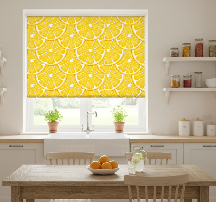 Reference: E6331Transform your living space with our stunning Kitchen roller blind citrus slice design! This vibrant design features a beautiful citrus slice pattern, bringing a splash of color and energy to any room. The playful graphics not only enhance your kitchen decor but also create a cheerful ambiance that makes cooking and dining more enjoyable. With easy assembly in just two clicks, this roller blind is not only visually appealing but also offers practical benefits like easy cleaning and disassembly, allowing you to maintain a fresh and inviting space effortlessly!