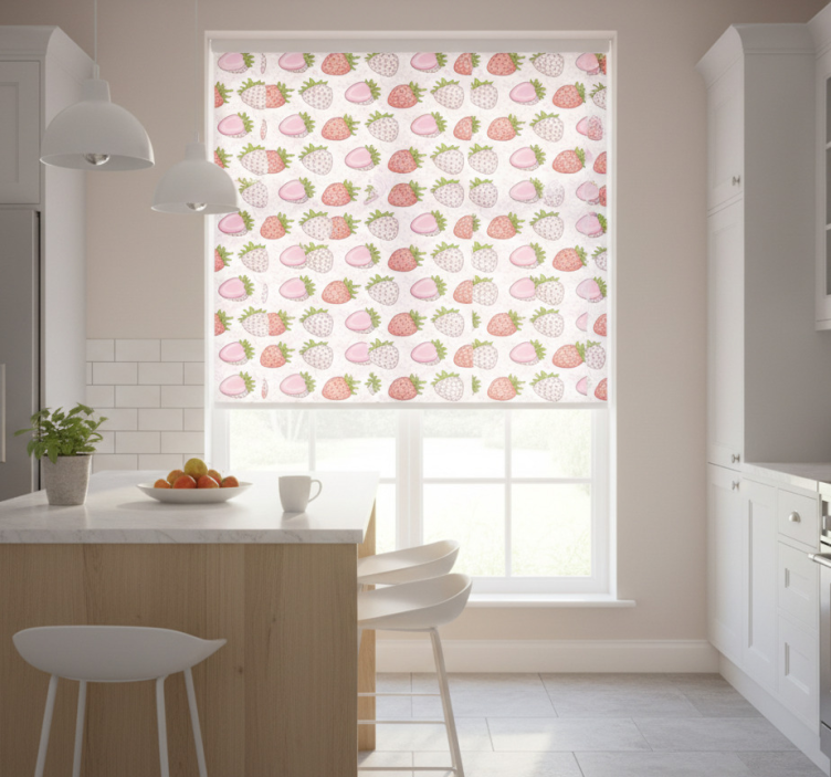 Kitchen roller blind strawberry patterns