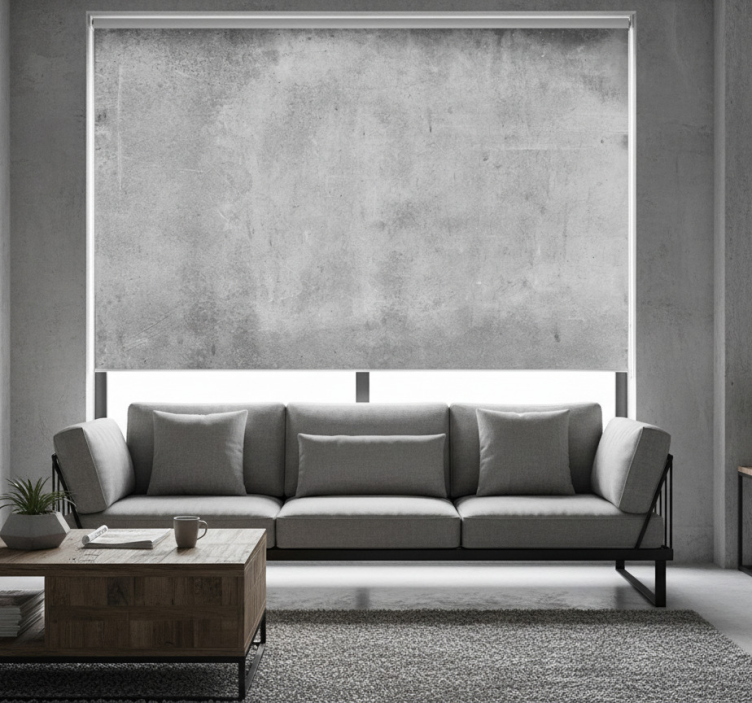Reference: E9645Transform your living space with our Living room roller blind cement worn industrial style. This elegant roller blind features a unique cement texture that encapsulates the essence of worn industrial design, creating an inviting atmosphere in your home. With easy assembly in just two clicks, effortless cleaning, and customizable measurements, this roller blind is not just functional but also a statement piece that enhances your interior decor!