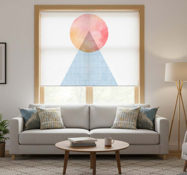 Living room roller blind sun and wall art triangle