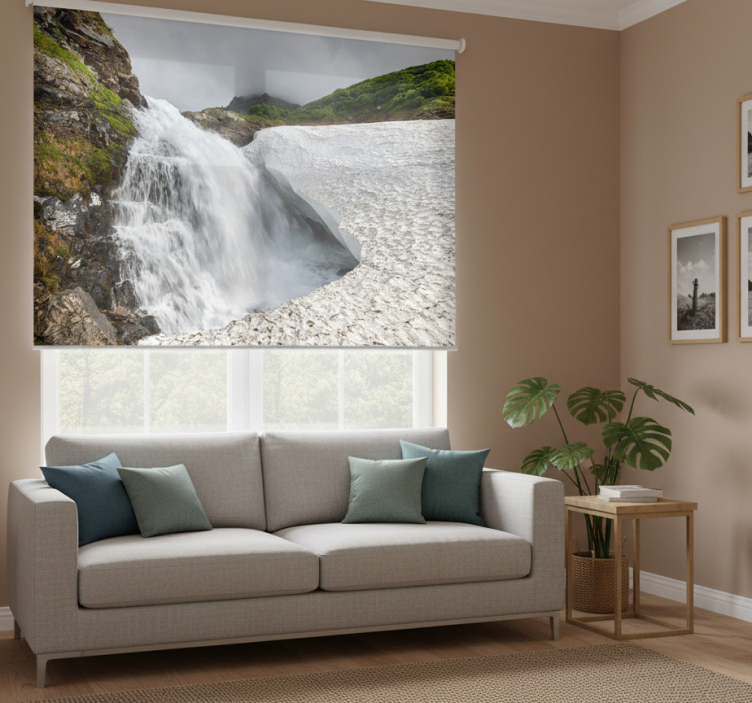 The Living room roller blind waterfall on rock living room roller blind is a perfect choice for those looking to elevate their home decor. Its unique design adds a touch of nature-inspired elegance, making it a focal point in any room. Imagine the calming effect of a waterfall right in your living space! This roller blind not only serves a functional purpose but also enhances the overall aesthetic, creating a warm and inviting atmosphere. Let your walls tell a story with this charming piece!