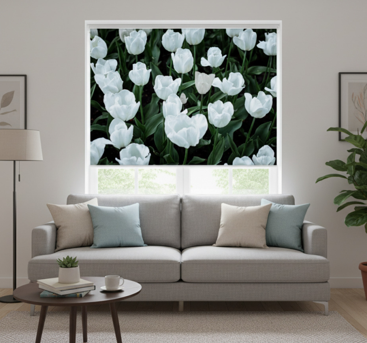Living room roller blind white tulips
