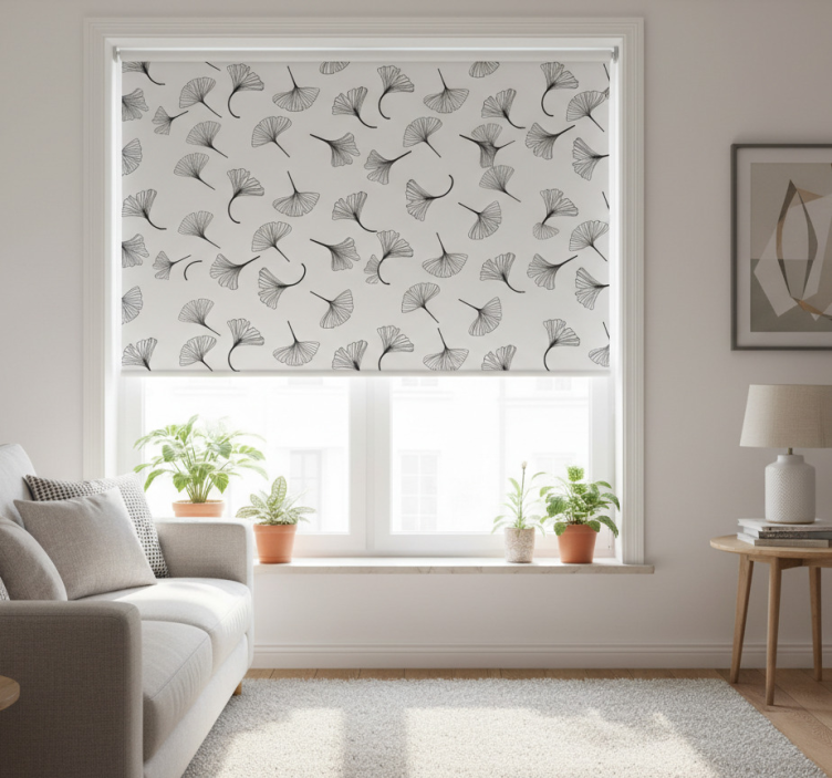 Reference: E7674Transform your living space with our Modern roller blind ginkgo leaves black pattern. The stunning design features elegant ginkgo leaves in a striking black pattern, bringing a touch of nature indoors. This roller blind not only enhances your decor but also provides essential functionality. Its easy assembly in just two clicks ensures that you can quickly set it up, while the easy-to-clean fabric allows for effortless maintenance. Enjoy the perfect balance of aesthetics and practicality!