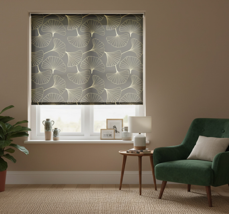 Modern roller blind ginkgo leaves charcoal gold