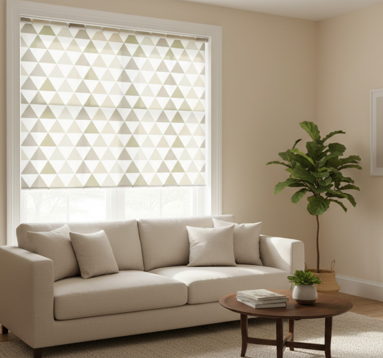 Modern roller blind in beige triangle patterns