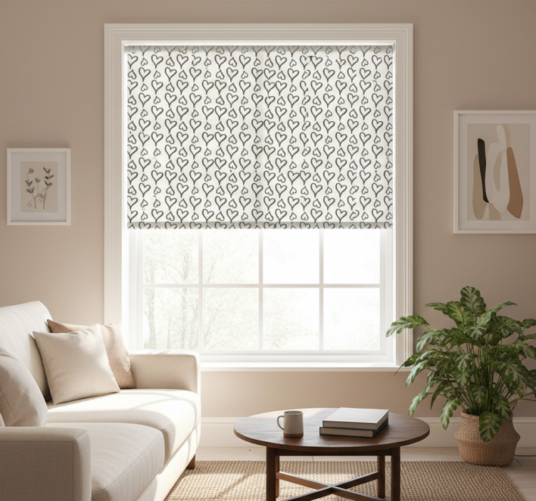 The Modern roller blind with black heart illustrations modern roller blind is not just a window covering; it's a statement piece that transforms your space! This delightful design inspires creativity and adds a playful touch to your decor. Imagine how these charming hearts can brighten up your living room or bedroom, creating a cozy atmosphere that welcomes relaxation and joy. Elevate your interior design with this roller blind that perfectly balances aesthetic appeal and practical functionality!