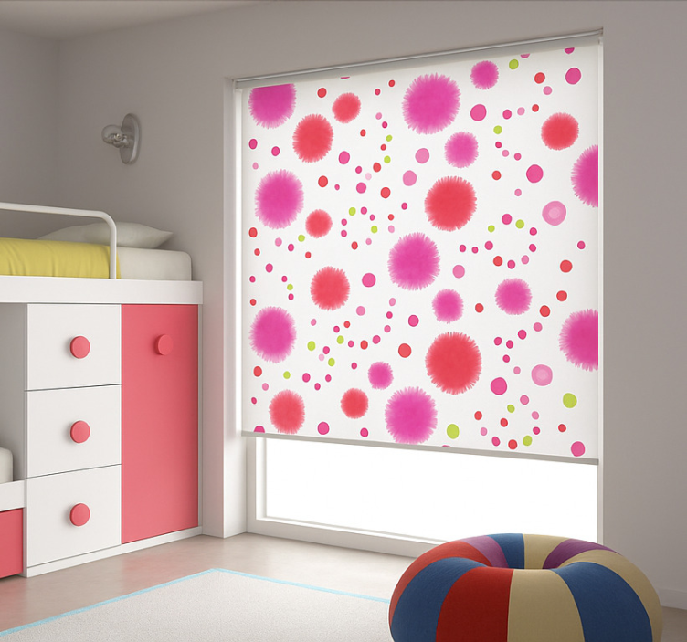 Reference: E5841Transform your teenage bedroom with the vibrant Pink Pop Pattern teenage bedroom roller blind, designed to bring a fun and lively atmosphere! This eye-catching roller blind features a delightful pink pop pattern, ensuring that it not only blocks out direct sunlight but also adds a splash of color to your room. Its easy assembly in just two clicks makes it a hassle-free addition to your decor, while the option for 100% customisable measurements ensures a perfect fit for every window.