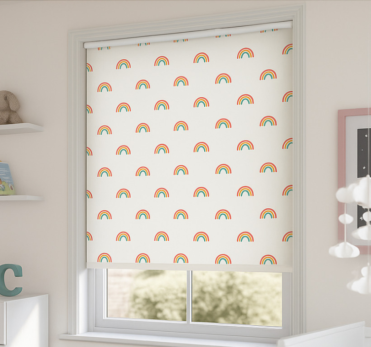 Scandinavian roller blind colourful cascading rainbows