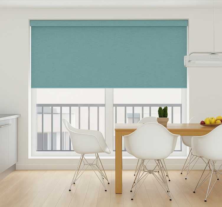 Reference: E6079Introducing our stunning Scandinavian roller blind in teal blue monochrome, a perfect blend of elegance and functionality. This roller blind features easy assembly and disassembly in just 2 clicks, making it a breeze to clean your windows and surroundings. It effectively protects your room from direct sunlight while providing necessary privacy when lowered. The design also allows for temperature regulation, ensuring your home remains comfortable throughout the year. With 100% customizable measurements and three textures to choose from, this product not only enhances your decor but also adds a touch of sophistication to any room!