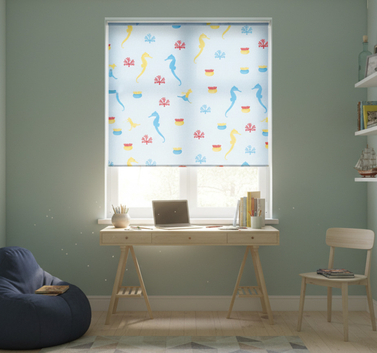 The Teenage bedroom roller blind sea horse and coral teenage bedroom roller blind is an inspiring choice for decorating your teenager's room! This product not only enhances the aesthetic appeal but also sparks creativity and imagination. With its unique design, it adds a touch of the ocean's beauty, inviting a sense of calm and adventure. Let your teenager enjoy a space that reflects their personality and interests while providing functional benefits!