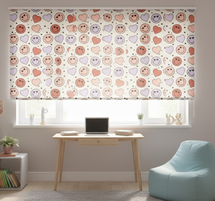 The Teenage bedroom roller blind with love and hearts is an essential decoration piece that brings life to your room. Not only does it improve the aesthetics of your space, but it also offers practical benefits. Imagine a blind that not only filters sunlight but also showcases your personality! This roller blind can help create a cozy and inviting atmosphere that reflects your unique style, making it a must-have for any teenage bedroom.