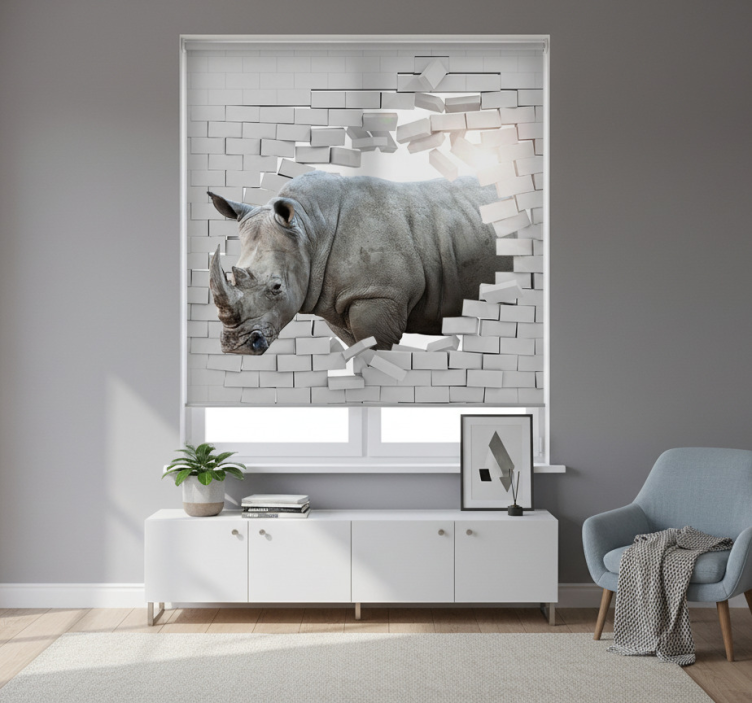 White roller blind 3d rhinoceros design