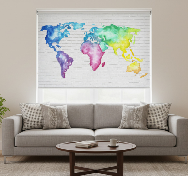 Reference: E8476Transform your space with our stunning White roller blind colorful world map design! This eye-catching roller blind features a vibrant world map, bringing a sense of adventure and exploration into your home. The beautiful colors and intricate details make it a standout piece that enhances any room's aesthetic. Easily customizable, this roller blind is not just about looks; it provides essential functions like light regulation, privacy, and protection from direct sunlight. With easy assembly and disassembly in just two clicks, maintaining your windows has never been easier!