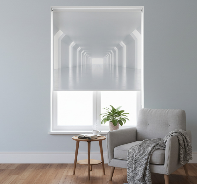 The White roller blind futuristic corridor view white roller blind elevates your decor with its sleek and contemporary design. It’s not just a window covering; it’s a statement piece that transforms any space into a stylish corridor of light and privacy. Imagine waking up to a beautifully decorated room that inspires creativity and relaxation! This roller blind perfectly complements modern interiors and enhances your home’s overall ambiance.