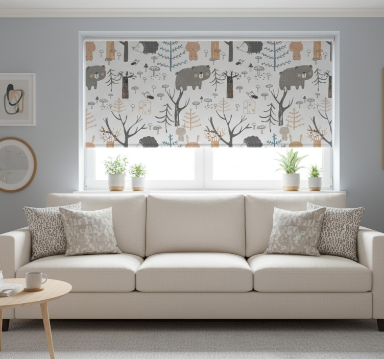 The White roller blind Scandinavian forest animals white roller blind is not just a window covering; it's a statement piece that adds charm and personality to your home. Imagine the joy it brings as it brightens your space with delightful animal motifs, inviting warmth and comfort. This roller blind enhances your decor while ensuring privacy and controlling light, making it a delightful choice for any room!