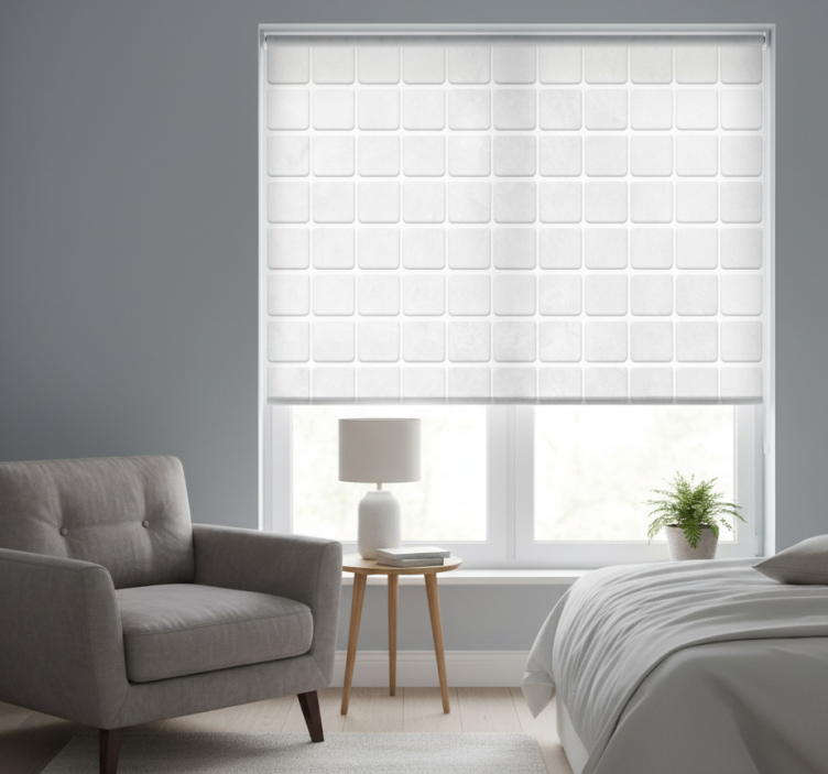 Reference: E8710Experience the perfect blend of style and functionality with our White roller blind white mesh mosaic. This elegantly designed roller blind features a striking mosaic pattern that combines contemporary aesthetics with practical performance. Its easy-to-clean fabric ensures that your window treatments remain fresh and beautiful, while the easy assembly and disassembly in just two clicks make it a breeze to maintain your living space. Additionally, it effectively protects your room from direct sunlight, enhances privacy when lowered, and assists in regulating room temperature, making it an exceptional choice for any home!