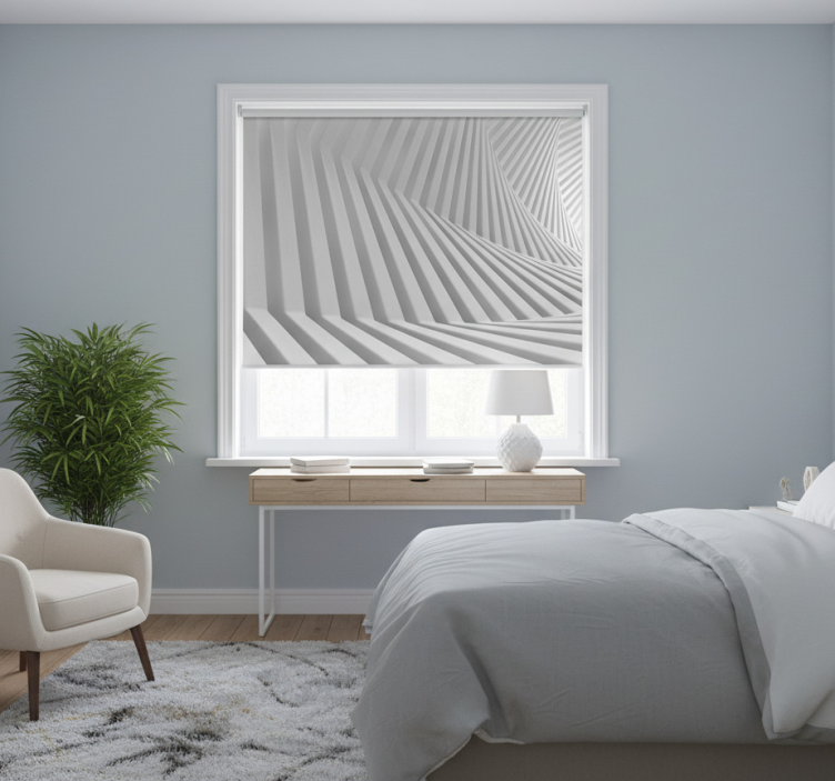 The White roller blind with abstract geometric waves white roller blind is more than just a window covering; it's an exquisite piece of art that elevates your home decor! With its striking design, it creates a sophisticated atmosphere that inspires creativity and tranquility. Whether you're decorating a cozy living room or a modern office, this roller blind serves as a perfect backdrop, adding charm and elegance to your interior spaces.