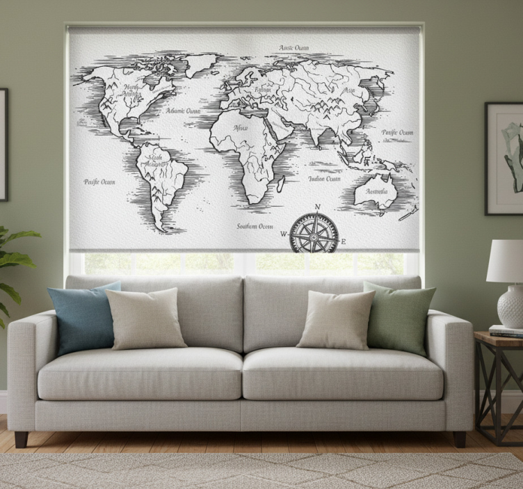 The White roller blind with elegant worldmap design is more than just a window covering; it is a statement piece that transforms your space into a global haven. Imagine the inspiration it brings as you gaze upon the intricately designed world map, sparking wanderlust and curiosity. This exquisite roller blind not only enhances your decor but also provides essential privacy and light control, making it an ideal addition to any room.