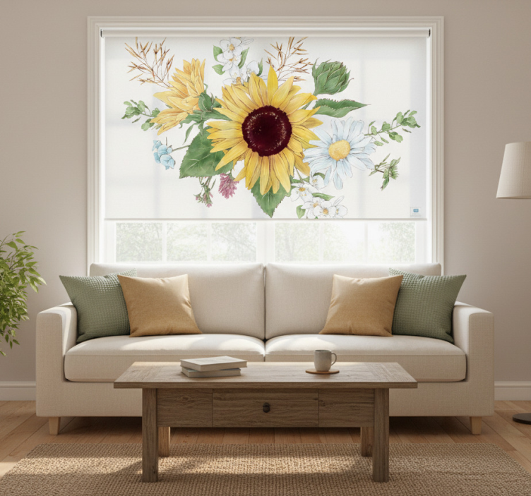 The White roller blind with sunflowers and daisies white roller blind is the perfect choice for those looking to elevate their interior decor. Imagine brightening up your living space with a touch of nature's beauty! This roller blind adds a fun and vibrant flair, making any room feel warm and inviting. It's an ideal solution for those who want to harmonize style with functionality, bringing a cheerful ambiance that inspires relaxation and joy.
