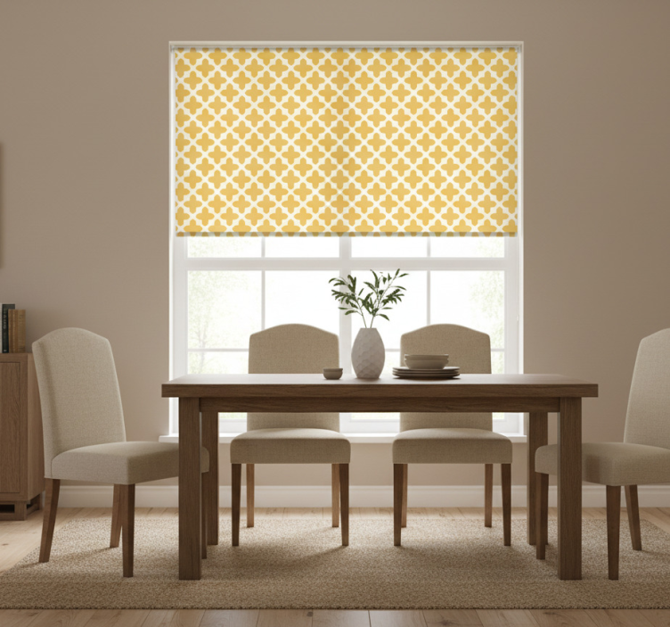 - yellow roller blind with arabesque design