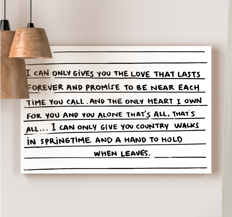Our canvas features a hand-written text on paper, giving it a charming and nostalgic look. The design is original and the canvas is made from high-quality materials, ensuring its durability.