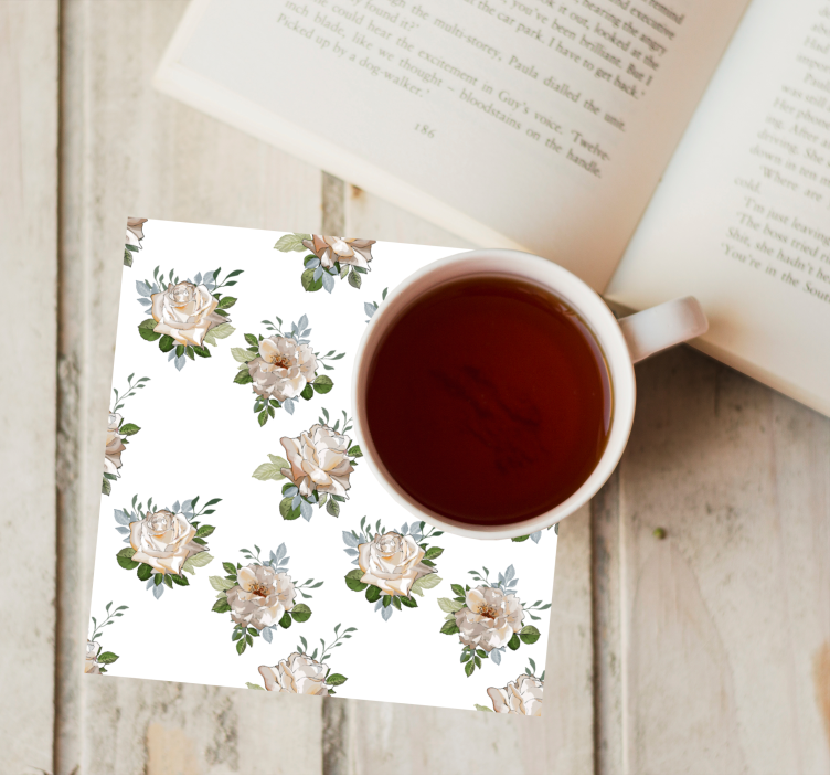 Transform your living space with our Floral white background pattern coasters! Each coaster features a stunning design adorned with delicate flowers, including roses and vibrant leaves, all set against a soft color palette that evokes nature's elegance. This beautiful pattern breathes life into any room, making it an essential addition to your home decor.