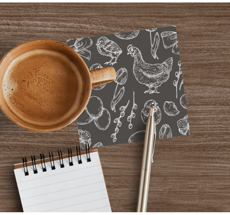 Enhance your home decor with our drink coasters set featuring a delightful spring chicken egg design on a sleek grey background. These coasters not only add a touch of charm to your table setting, but also provide excellent protection against scratches and drink spills.