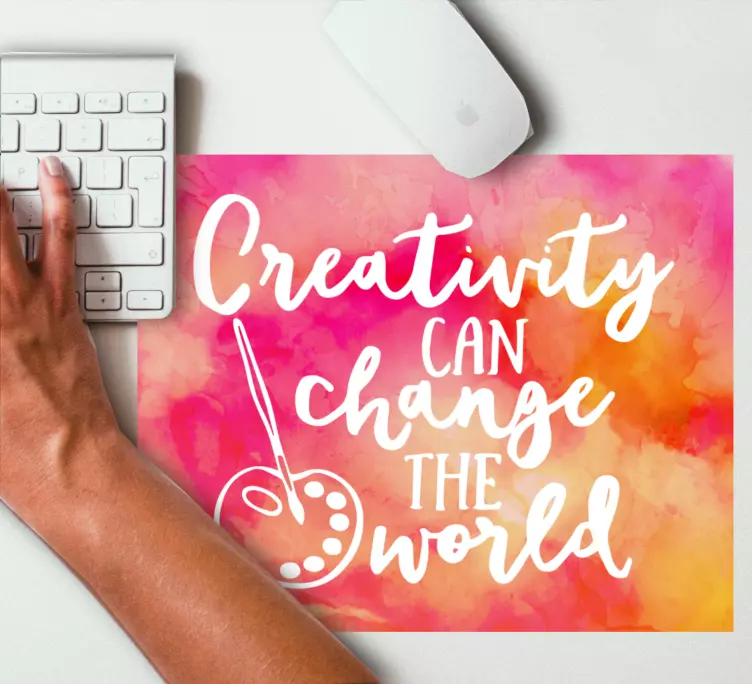 This watercolour text mousepad is perfect for those who want to add a touch of creativity to their workspace. The orange and pink watercolour effect background adds a vibrant and artistic look to your desk. The white text and decorative details further enhance the overall design.