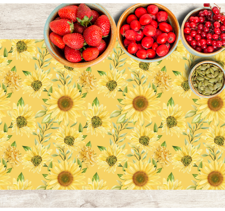 Upgrade your table's appearance with these Big Sunflowers Petals Vinyl Placemats. With their unique elements, you can effortlessly change the ambiance of your dining area at any time. Crafted with the utmost care using top-quality materials, these placemats are designed to satisfy your needs. If you appreciate floral decor, these placemats are perfect for you. They will add a touch of elegance to any meal. Don't miss out on the opportunity to enjoy precious moments with your loved ones. Harmonize the look of your gatherings with friends and family by adding these stunning placemats to your table. Decorate your dining area and bask in the compliments from your guests. Order this stunning sunflower pattern placemat for lunch now!