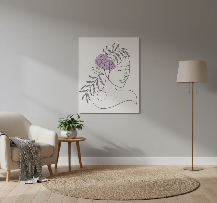 Reference: G971Introducing our stunning Flower poster minimalist woman's face, a captivating artwork that beautifully blends elegance with simplicity. This design features a graceful woman's face adorned with delicate floral elements, creating a harmonious balance of nature and femininity. Crafted with a premium 180g/m2 grammage, the poster boasts a semi-matt finish that eliminates reflections, ensuring vibrant color intensity that will illuminate any space.
