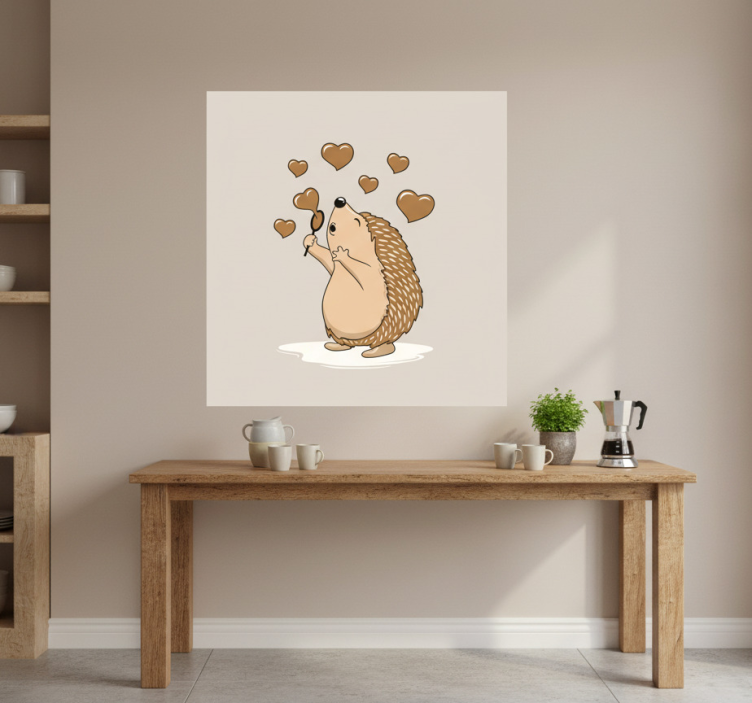 Reference: G601Introducing our charming Kitchen poster hedgehog with love hearts, a delightful piece that beautifully combines whimsy and warmth. Featuring a hedgehog surrounded by vibrant love hearts, this design captivates with its high colour intensity and semi-matt finish without reflections, making it a stunning addition to any kitchen decor. Crafted from 180g/m2 grammage material, this poster is perfect for showcasing your personal style and bringing joy to your space!