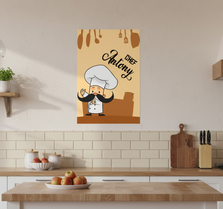 Reference: G639Introducing our stunning Kitchen poster personalized chef, designed with vibrant color intensity that brings life to your kitchen space! This unique poster is crafted on high-quality 180g/m2 paper, featuring a semi-matt finish that eliminates reflections, allowing the artwork to shine through beautifully. With its eye-catching design, this personalized chef poster serves not just as decoration, but as an inspiring centerpiece that speaks to your culinary passion!