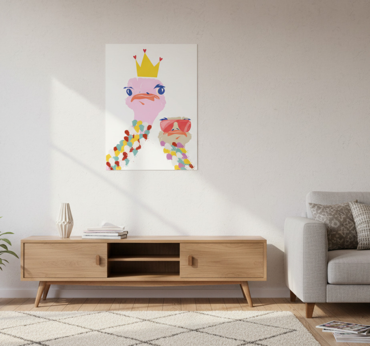 The Living room poster colorful ostriches art style living room poster is more than just a piece of art; it’s an invitation to embrace joy and creativity in your home. Imagine the vibrant colors and playful ostriches brightening your living area, creating an atmosphere that inspires happiness and conversation. This poster serves as a perfect focal point, inviting guests to experience a slice of artistic charm that enhances the ambiance of your space!