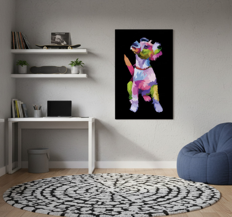 Reference: G775Introducing our stunning Living room poster geometric fox terrier art, a captivating design that beautifully combines modern aesthetics with the playful spirit of the beloved fox terrier. This artwork features a striking geometric pattern that showcases vibrant colors, high colour intensity, and a semi-matt finish that eliminates reflections, making it perfect for any living space. Printed on 180g/m2 paper, this poster stands out as an ideal choice for art lovers who appreciate quality and uniqueness.