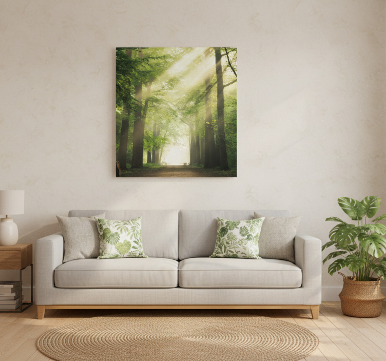 Reference: G802This stunning Living room poster green forest with the sun captures the essence of nature in a vibrant and inviting way. Featuring a lush green forest bathed in warm sunlight, this design brings a sense of tranquility and freshness to any space. The poster is printed on 180g/m2 grammage paper, ensuring durability and a semi-matt finish that eliminates reflections while showcasing high color intensity.