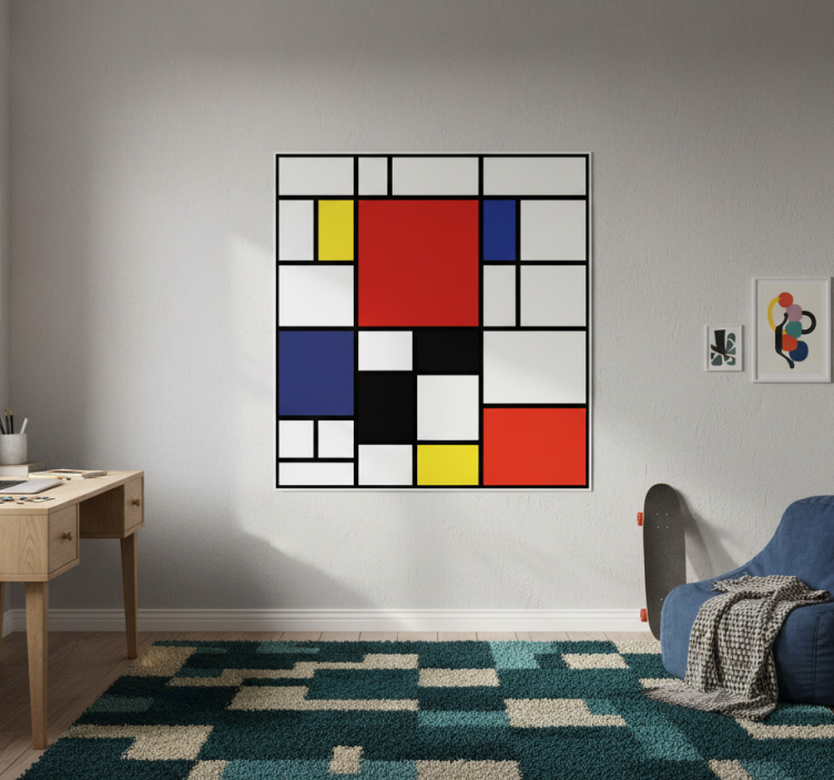 Reference: G798Transform your space with our stunning Living room poster in abstract color blocks, featuring a captivating design of vibrant color blocks that come together harmoniously. This artistic piece showcases a semi-matt finish without reflections, ensuring the high color intensity truly stands out, making it a perfect addition to any room.